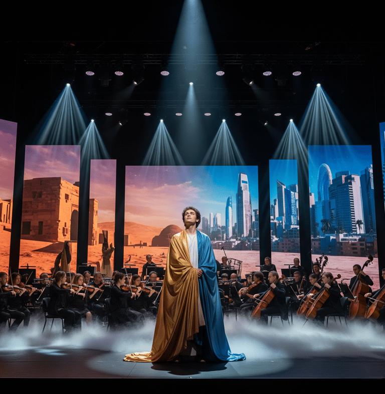 The stage production pushes beyond convention: featuring powerful male and female voices, emotionally charged orchestral arrangements, and a symbolic narrative that unites the ancient and the modern in a seamless artistic dialogue.